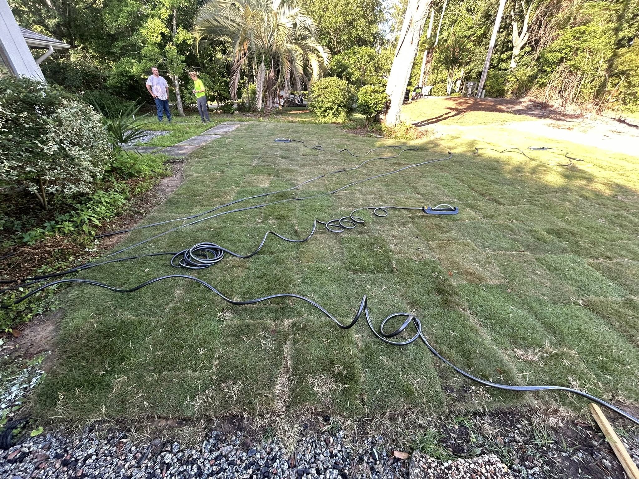 Some have been removing old grass, adding dirt, grading, fixing irrigation, fixing drainage and installing sod. When having companies install sod, you must make sure proper soil and ground prep is done. A lot of companies throw sod down improperly around here and just toss it down and leave lots of gaps. Those gaps take seasons or years to fill in and more work than if they would have made sure the pieces were tightly put down to prevent gaps. Sod needs to be watered properly multiple times a day. Sod must grow together before you go to mow it, so it doesn't move apart on you. You get rough estimated four hundred fifty square feet on a pallet. Different types of sod grow at different times of the year so you must check on that type of grass you want to put down to figure out when you can get it to install it. Sometimes paying a little more for sod is better due to showing they put proper chemicals down to keep away bugs or other things when growing the sod at the farm. If you are going to install on hills or have a company install, make sure staples are used to keep it in place. Make sure you have good working irrigation with good coverage on the yard. When we price the sod installations, we itemize the quotes so you can see all that is included. It may seem higher, but you see what all is being done or included vs a company just saying half the price and no real information. If you install sod in your yard and it seems to die out in a year in spots, contact a company like ours to come get a feel for what might be going on and see how we can try and fix the issue. We would have to know all the work you had done when you did the process of that area to make sure that you did bring in topsoil to give it proper nutrients. There are no grubs or moles, or other issues going on with the grass that might have not been from the installation process.